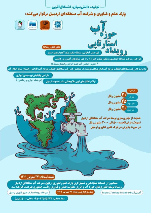 گفتنی است منتخبین از خدمات شتابدهی و تسهیل گری شرکت آب منطقه ای اردبیل، پارک علم و فناوری استان و ستاد توسعه فناوری های حوزه آب و انرژی معاونت علمی و فناوری ریاست جمهوری بهره مند خواهند شد.