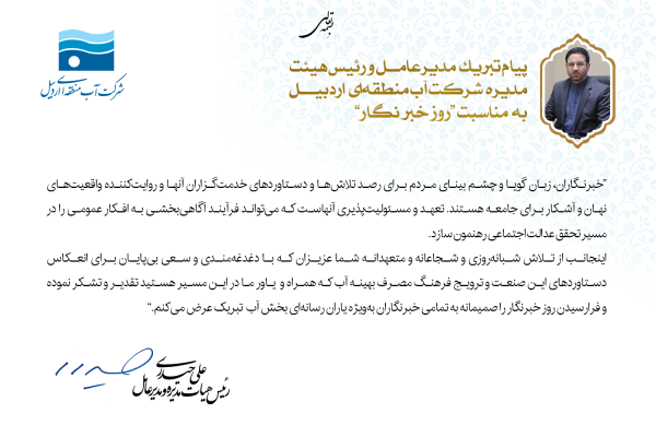 مدیرعامل شرکت آب منطقهای اردبیل طی پیامی روز خبرنگار را به فعالین این عرصه تبریک گفت.