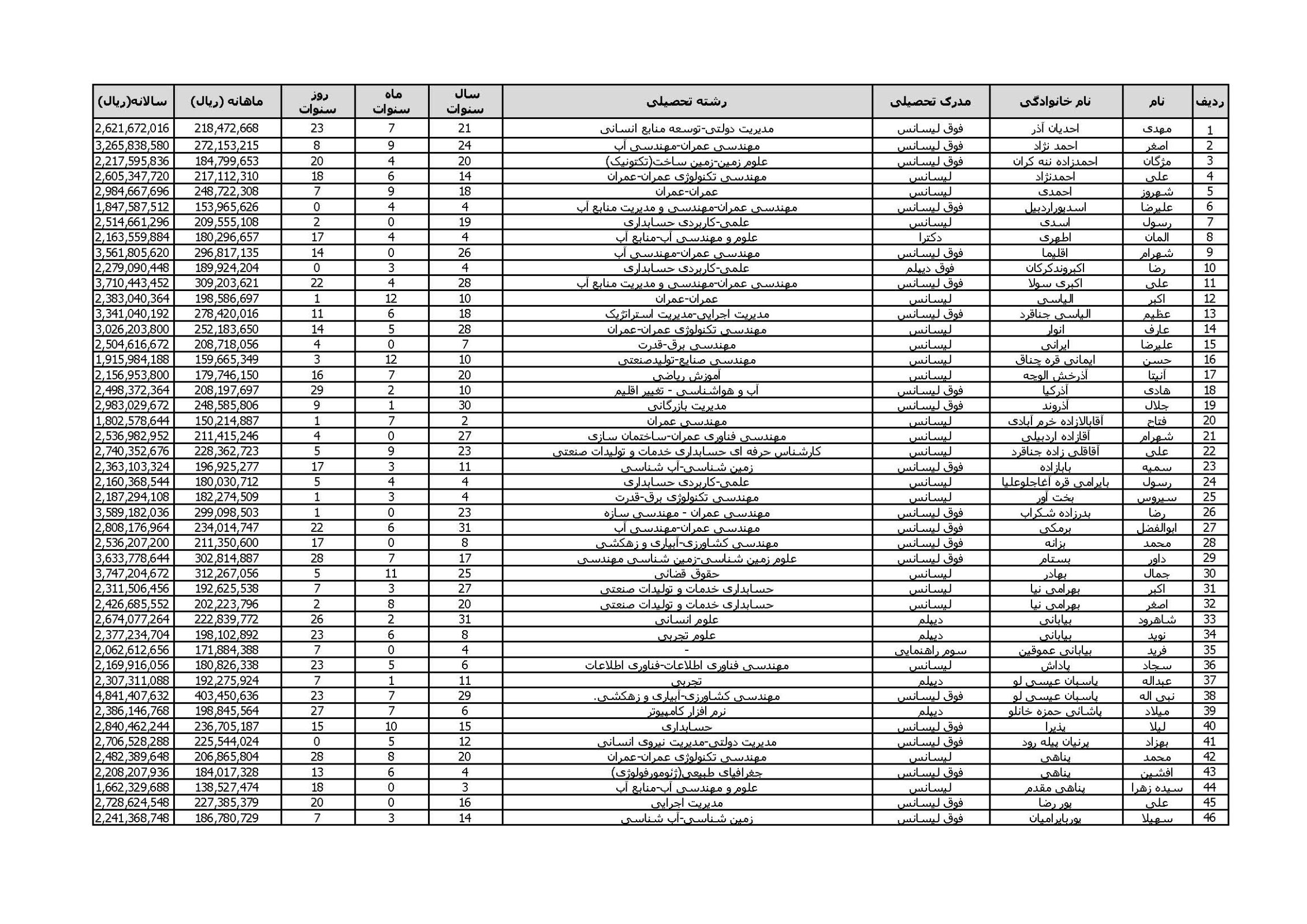 اطلاعات حقوق و مزایای ماهانه و سالانه مدیران