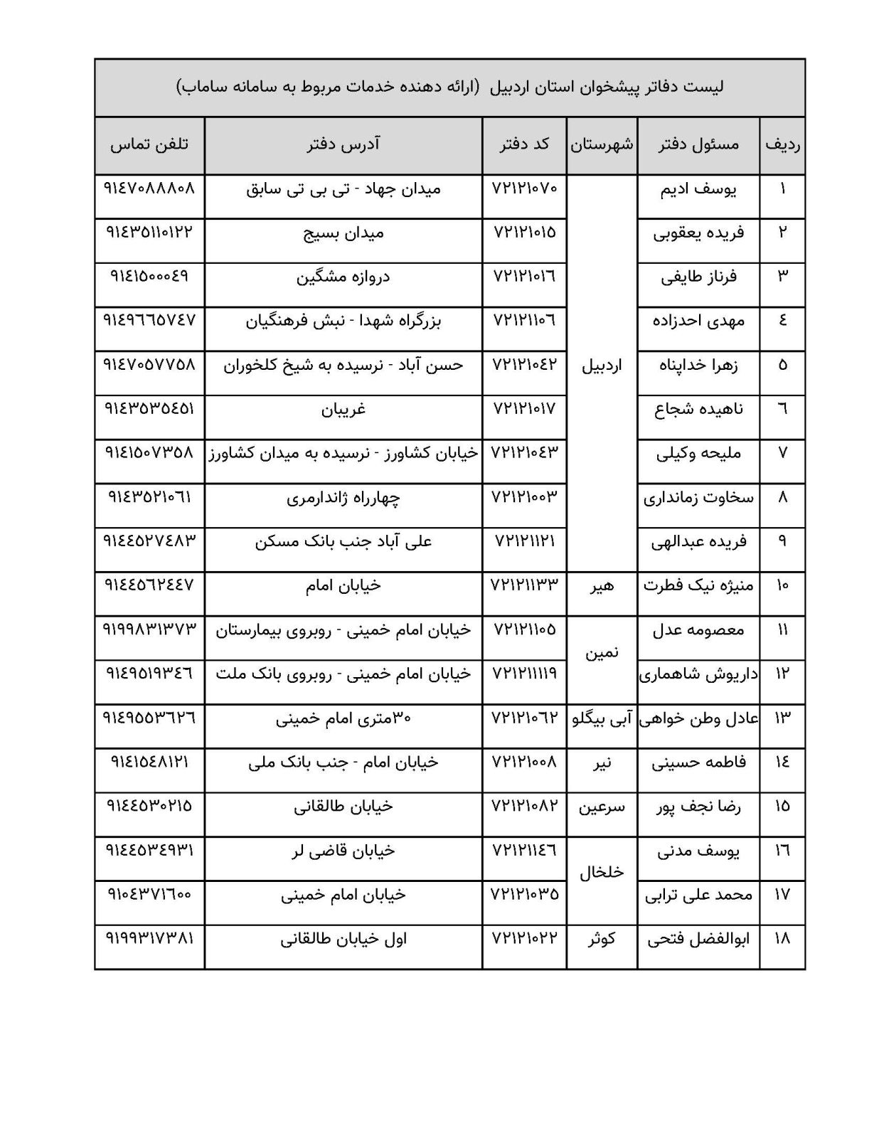 لیست دفاتر پیشخوان ( سامانه ساماب)